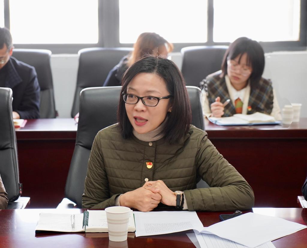 张影陆校长认真听取支部党员同志发言,并与参会党员老师亲切交谈。首先,她对本次党支部专题活动及党员老师们分享的教学案例表示肯定,同时提出课程思政要结合不同学科特点,要像盐一样,融入、渗透到每个育人环节。其次,要重在严谨贴切,研究相关书籍,找准课程思政的抓手和着力点。第三,要妙在画龙点睛,内容并非越多越好,要妙在得,运用恰当、合理。学校也在积极推动一个宿舍结对一名教师党员或一名党员领导,用优秀教师党员的人格力量去影响学生,提高学生的精神追求。最后,张校长也对在座教师党员提出殷切希望,希望在深入理解党的历史精神的同时,凝心聚力,坚定“为党育人、为国育才”的崇高使命,深挖课程思政教育元素,使课堂成为弘扬主旋律、传播正能量的主阵地,培养担当民族复兴大任的时代新人。