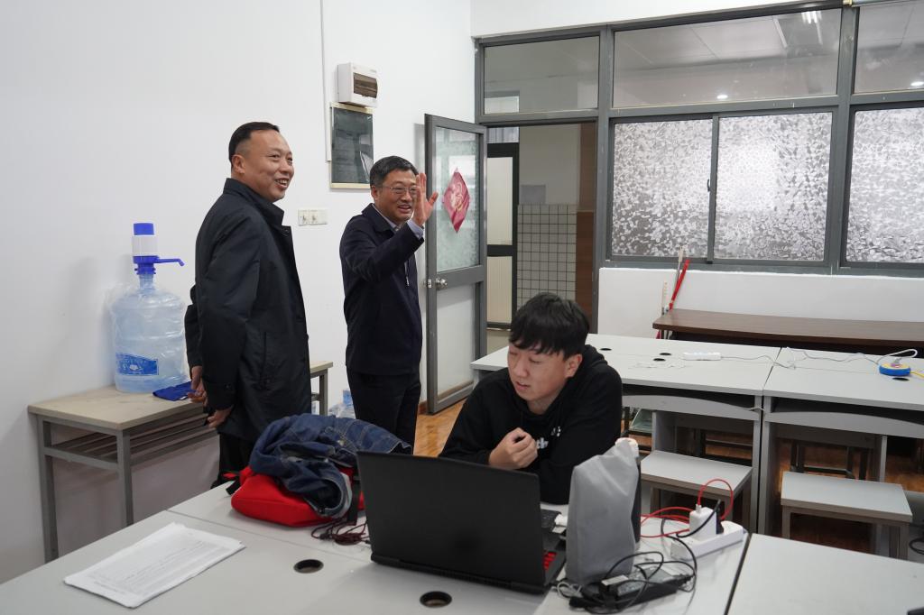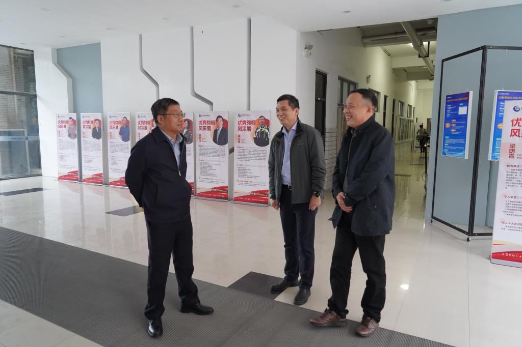 2022年11月28日下午,校长陈卫来到国产自拍走访调研,院长刘渊和党委书记张华陪同。