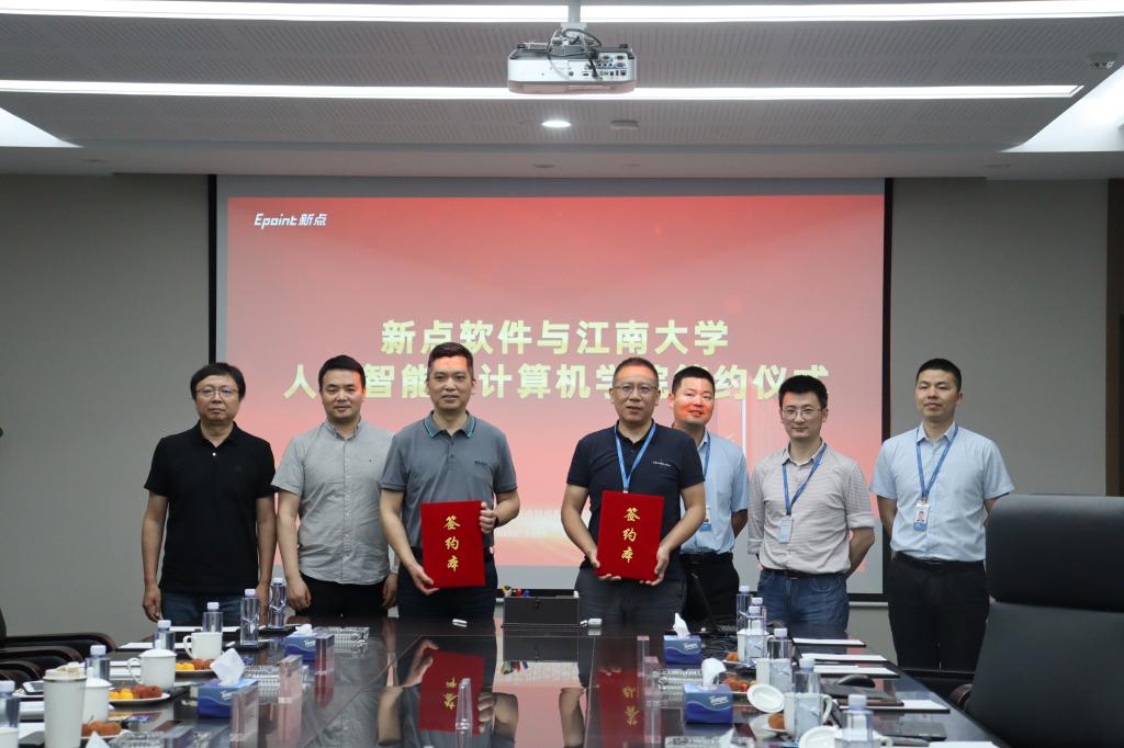 、人才培养、毕业生就业、科研平台等对学院进行了全方位介绍,期待和新点软件建立长期合作的发展模式,通过优化人才培养方案,以就业实习基地建设为基础,聚焦立德树人,持续深化产教融合,着力提高学生的综合素质和创新能力,共育满足市场需求的高素质应用型人才,携手助力毕业生就业。座谈会上钱鹏江副院长、宋晓宁教授等围绕产学研合作等与企业进行了深入交流。