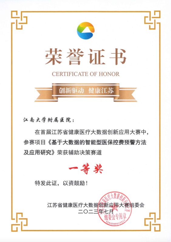 7月18日,首届江苏省健康医疗大数据创新应用大赛颁奖典礼在江苏常州隆重举行。在此次大赛中,国产自拍