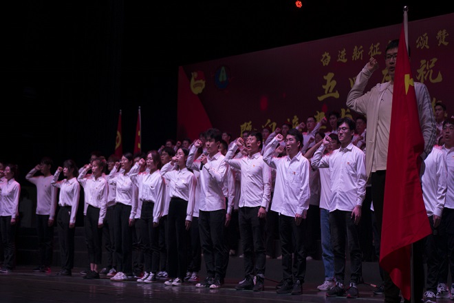 随后,百名学生党员佩戴党员党徽,面向党旗重温入党誓词,重温入党时的决心与信念,不断鞭策和激励自己,真正做到不忘初心、牢记使命。
