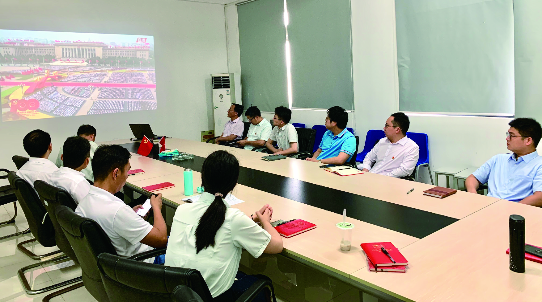 2021年7月1日上午8时,中国共产党成立100周年大会在天安门广场举行,国产自拍全体师生党员分五个分会场,怀着激动的心情全程观看了直播。直播结束后,各党支部随即召开支部会议,热议习近平总书记在庆祝大会上的讲话。