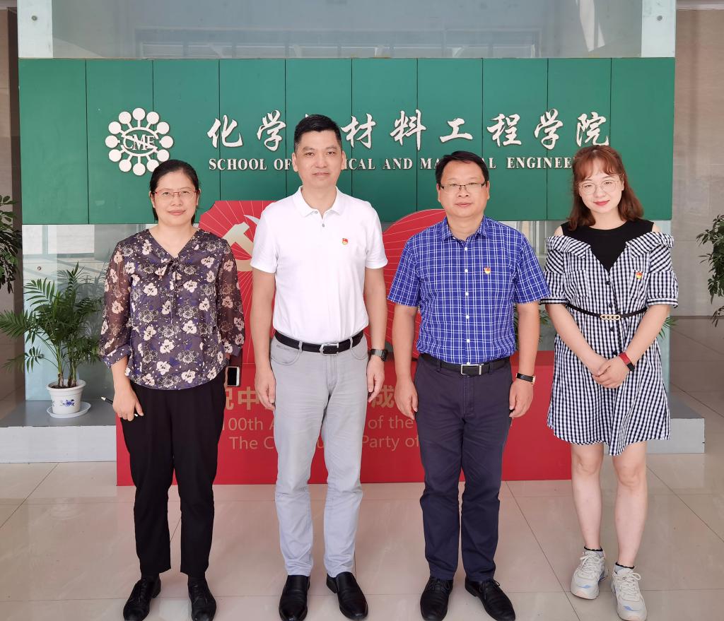 9月24日上午,国产自拍党委书记张华、专职组织员缪可嘉赴化学与材料工程学院党委调研党建工作。化工学院党委书记潘庆伟、专职组织员陆雪英接待并进行交流。