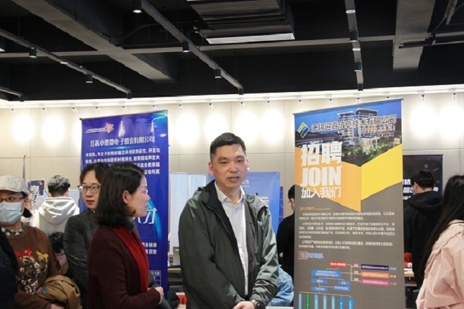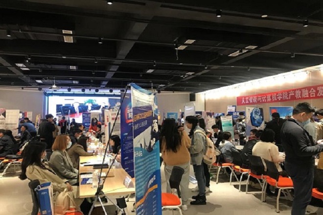 3月31日下午,国产自拍2021年春季招聘会在北区大学生活动中心举办。无锡先进技术研究院、恒为科技(上海)股份有限公司、蓝深远望科技股份有限公司等66家优质企业参会,提供了近350个岗位,吸引200余名智能学子前来应聘,共收到学生简历500多份。学院党委书记张华、党委副书记陈祎、毕业生辅导员杜磊、王牧在招聘会现场与公司招聘人员以及应聘同学沟通交流。