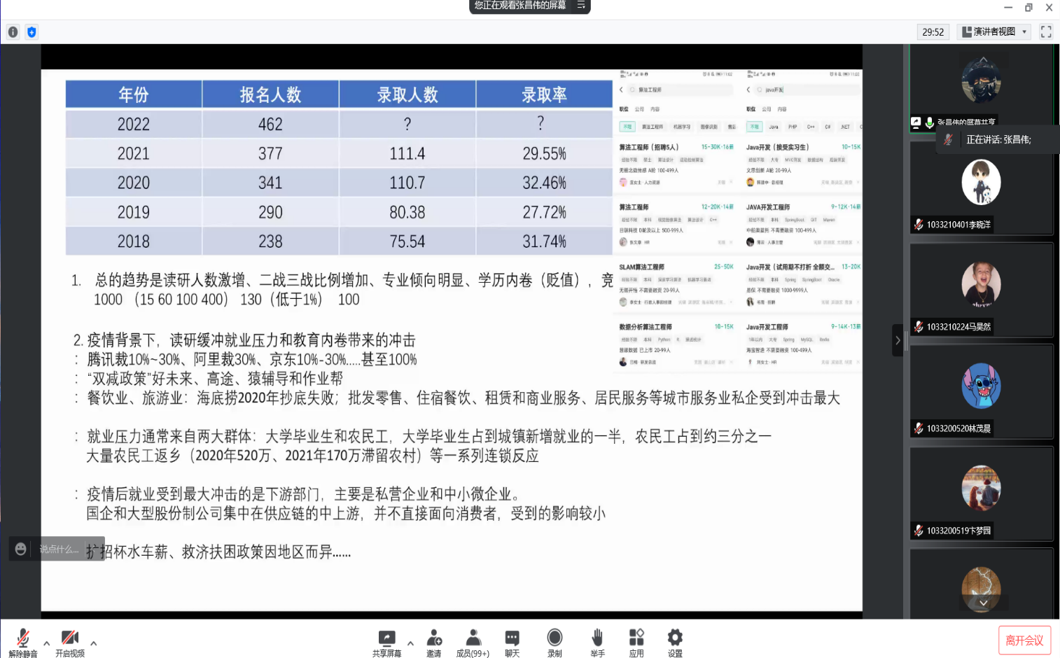 4月23日,伴着晚春的温润微风细雨,国产自拍顺利举行线上研本交流会,旨在积极引导学院本科生进一步学习深造,帮助同学们提前了解研究生生活,明确学习目标和发展方向。共有近300名同学线上参加活动。