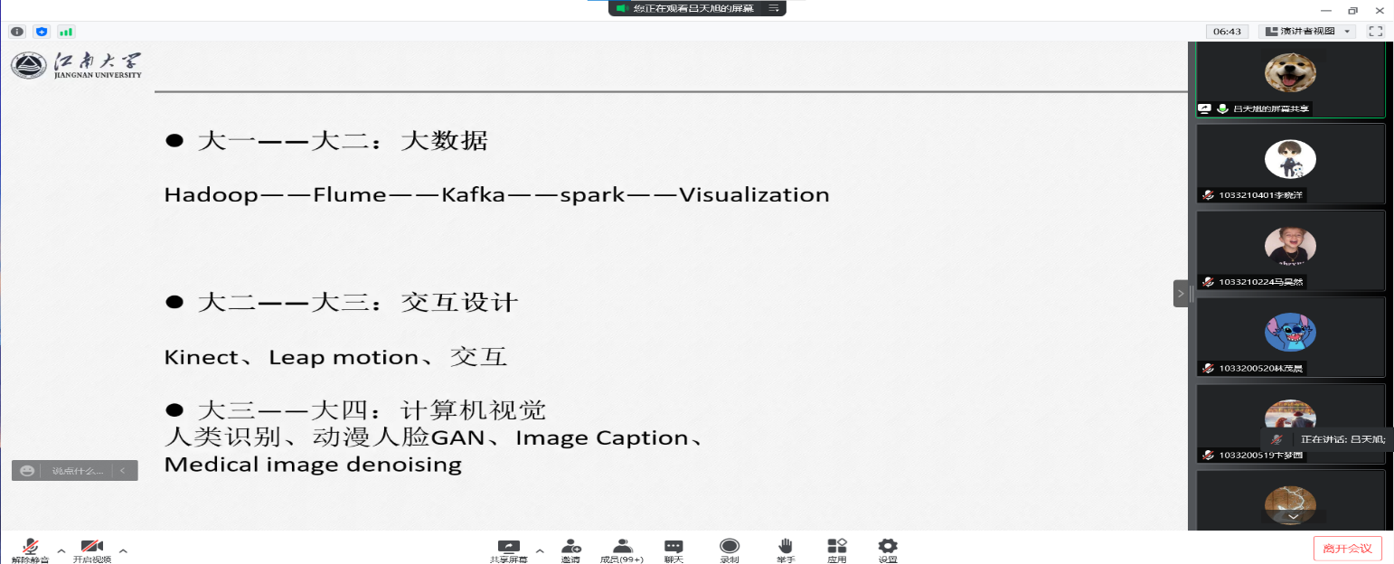 本次交流会邀请了四位优秀研究生代表作为嘉宾进行分享,他们分别就自身的考研历程、项目经验、行业趋势、读研以后的学习生活状态等多个方面进行了详细阐释。吕天旭建议学弟学妹们要从课程和项目中发掘自己的爱好,确定学习方向,不断尝试、深入、探索,过程中提升能力。张昌伟分析了互联网领域工作岗位现状和考研形势,在行业领域、目标企业、就业地点和其它需求方面明晰了读研后就业的价值,鼓励同学们树立信心。黄超群结合自身的项目制作经历建议要抓住时代的机遇,例如博客、自媒体等,在知识上武装自己,积极主动探索,提升自身的专业实力。洪小燕重点介绍了自己的跨考经验,在自我分析的基础上分享了不同复习阶段的复习重点,强调贵在坚持。随后,自由交流环节,在线同学积极提问,四位研究生也一一进行了解答,全程气氛热烈融洽,同学们纷纷表示收获颇丰。
