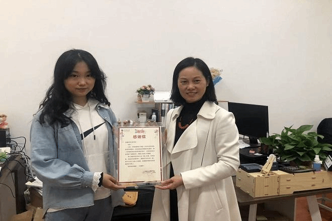 陈祎为王晓锋老师颁发感谢信