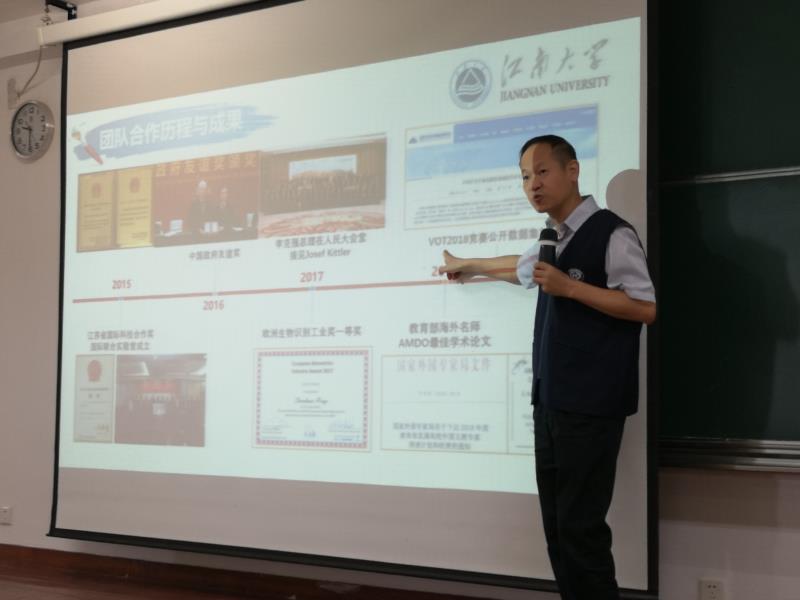 吴小俊教授首先从人杰地灵的无锡讲起,结合国家战略和地域优势向同学们展示了我院计算机专业的办学优势,随后从国产自拍