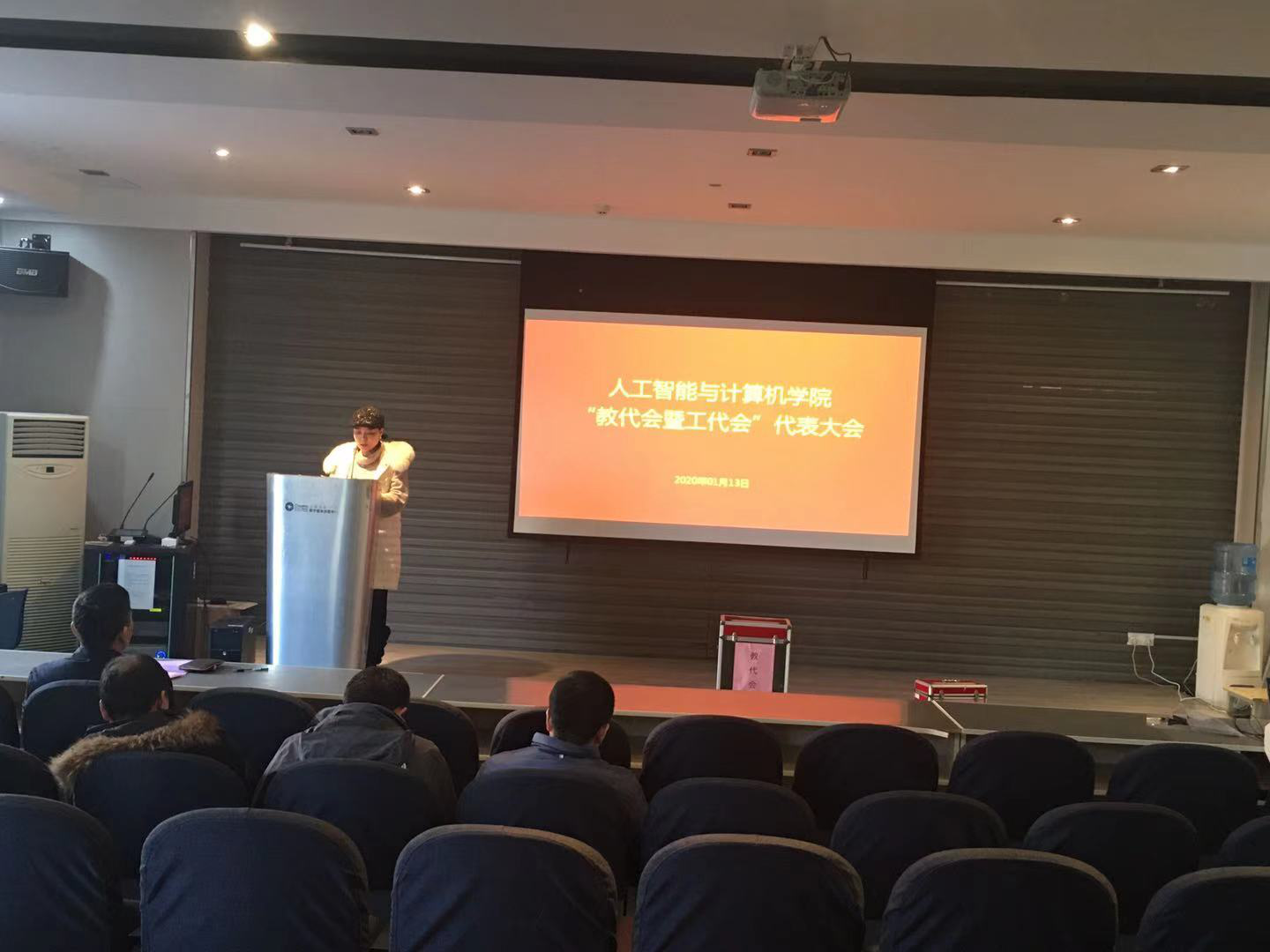 1月13日下午,国产自拍在智能楼116报告厅召开第一届两代会,并进行二级教代会执委会委员和工会委员会委员的选举,学院全体两代会代表参会,会议由院党委副书记陈祎主持。