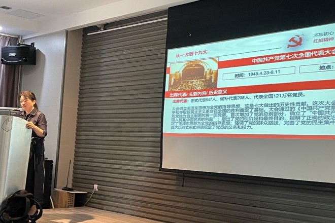 本次党课的主题为:“让红船精神照亮新征途”。蒋敏老师从“红船精神”的内涵和意义、伴随“红船精神”重温中共一大到党的十九大会议内容、“红船精神”的现实价值和实践意义三个方面具体展开党课的讲解。带领数媒本科党支部的成员了解了中国共产党从小到大、从弱到强,一步步走向伟大复兴的艰辛历程。最后,蒋敏老师指出,传承“红船精神”就是要继续弘扬敢为人先的首创精神,永远向前的奋斗精神。