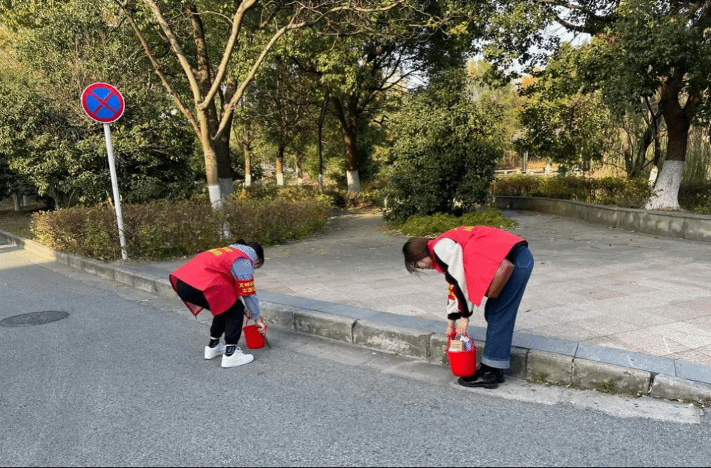 会后,全体党员同志奔赴各自的责任片区开展首次文明志愿活动。国产自拍研究生第三党支部的同志们也身着红马甲,臂带红袖章,手持保洁工具,来到国产自拍旁边开展第一次文明校园志愿活动。