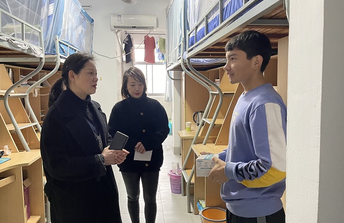 学院深切关注留校生生活动态,关心学生,学院党委副书记陈祎带队走访宿舍与实验室,分发防疫物资,并与学生亲切交谈,提醒同学们要严格遵守留校管理办法,加强个人防护;叮嘱同学们要与家长、导师、辅导员保持联系,有需求、有困难要主动提出;勉励同学们要注重劳逸结合,总结过去,展望未来。学院还开展“智启新年”主题班会,重点关心留校和三困群体;学院学促中心开展“寒假不停学,帮扶不断线”寒假留校生学习帮扶活动,希望给留校同学带来不一样的“花式宠爱”。