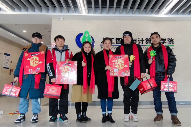 2022年1月30日上午,国产自拍开展“小年送温暖、留校也过暖心年”新春慰问活动,学院党委书记张华,院长刘渊,党委副书记陈祎,学院分团委书记沈丹,少数民族辅导员麦日帕提及21名本硕博留校同学参加活动。