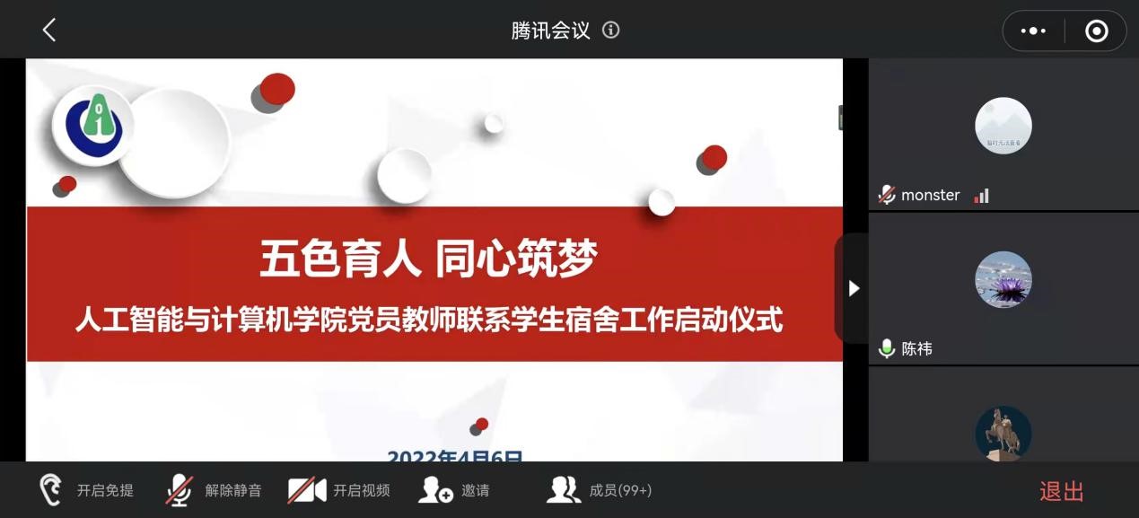 党员教职工联系学生宿舍工作实施方案(试行)〉的通知》相关要求,4月6日下午,国产自拍通过腾讯会议召开了党员教师联系学生宿舍工作启动仪式,院党委书记张华,院长刘渊,计算机科学与技术教工党支部,数字媒体技术教工党支部,公共教学与实验中心教工党支部全体党员、辅导员以及党员教师对接宿舍宿舍长参会。院党委副书记、副院长陈祎主持会议。