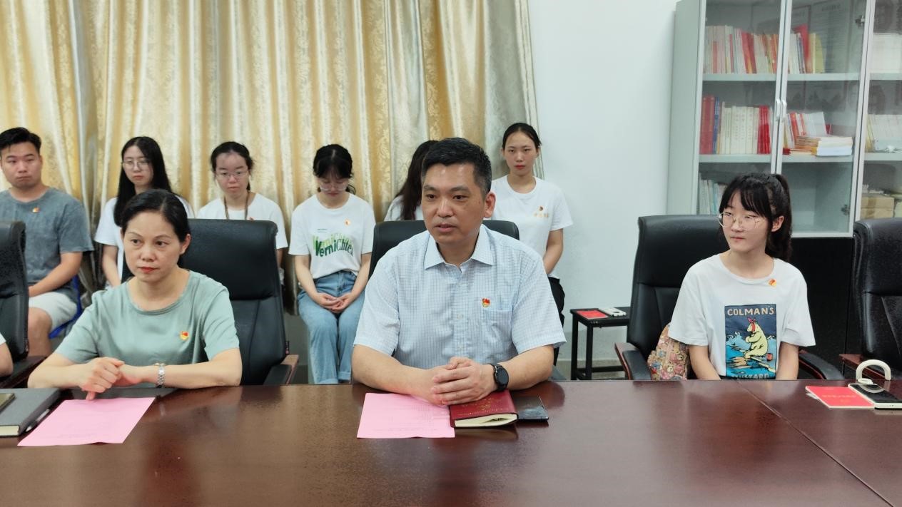 6月24号上午,在中国共产党第101岁生日即将到来之际,国产自拍在智能楼521隆重举行“喜迎二十大 奋进新征程”暨国产自拍新党员入党宣誓仪式。学院党委书记张华,党委副书记、副院长陈祎,2022年上半年新发展党员参加会议。会议由学院辅导员李猛主持。