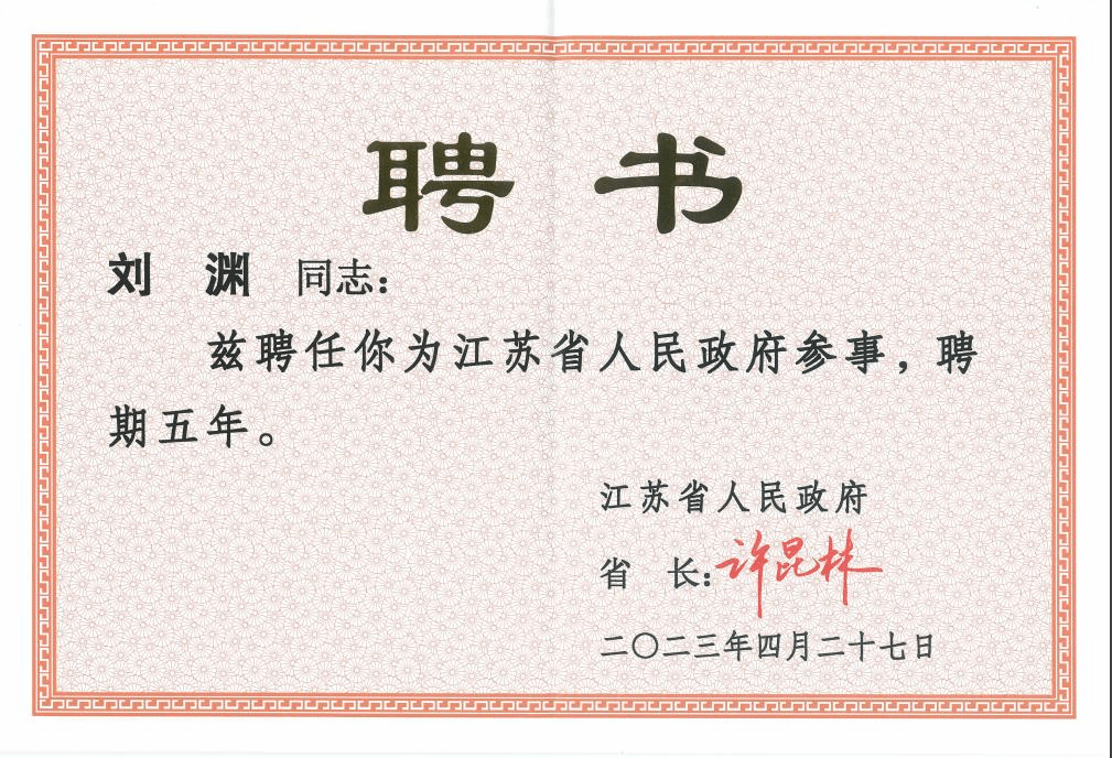 省人民政府参事由省长聘任,需具有一定的代表性、较大的社会影响和较高的知名度,具有较强的参政咨询能力。参事通过多种方式履行职责,参加爱国统一战线工作,如围绕省政府中心工作开展调查研究,对省政府的工作进行监督,对有关法律文件草案、重要的报告稿等提出修改意见及建议等。刘渊长期从事网络信息系统及网络安全和数字媒体相关软件的研究与开发,曾任科技部信息安全技术领域863专家组成员,中国计算机学会高级会员等。获评“中国商业联合会科技奖特等奖”“无锡市有突出贡献的中青年专家”。在一级期刊和核心期刊发表有关网络流量分析、网络安全等专著和论文40余篇。作为江苏省第十二届政协委员、无锡市政协委员和农工党国产自拍