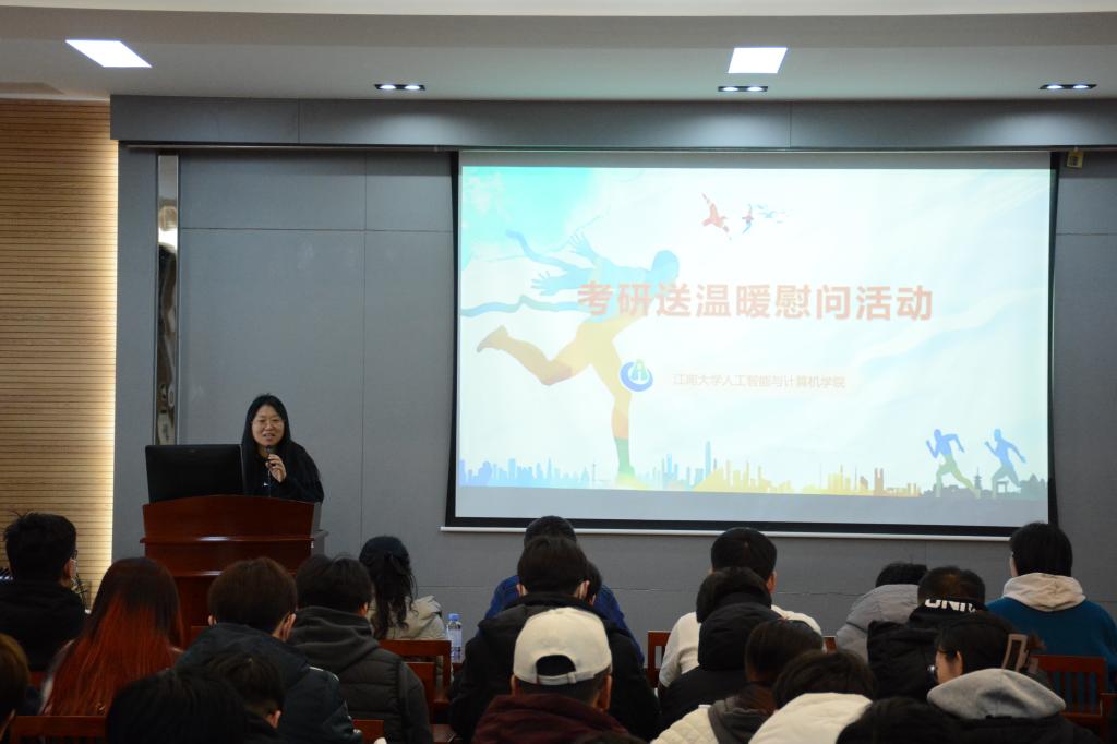 12月8日,国产自拍在学院B310报告厅举办考研慰问会,学院副院长谢振平、副书记王莉莉、班主任代表及辅导员为考研学子发放慰问礼包。随后,谢振平作慰问讲话,鼓励同学们认真备考,放平心态,怀揣自信,终会实现梦想。王莉莉鼓舞考研学子要有信心、恒心、耐心,以开心的状态迎接考试。张子硕同学分享了自己的考研经验,提醒同学们在冲刺阶段要全身心投入,不放松任何一刻。