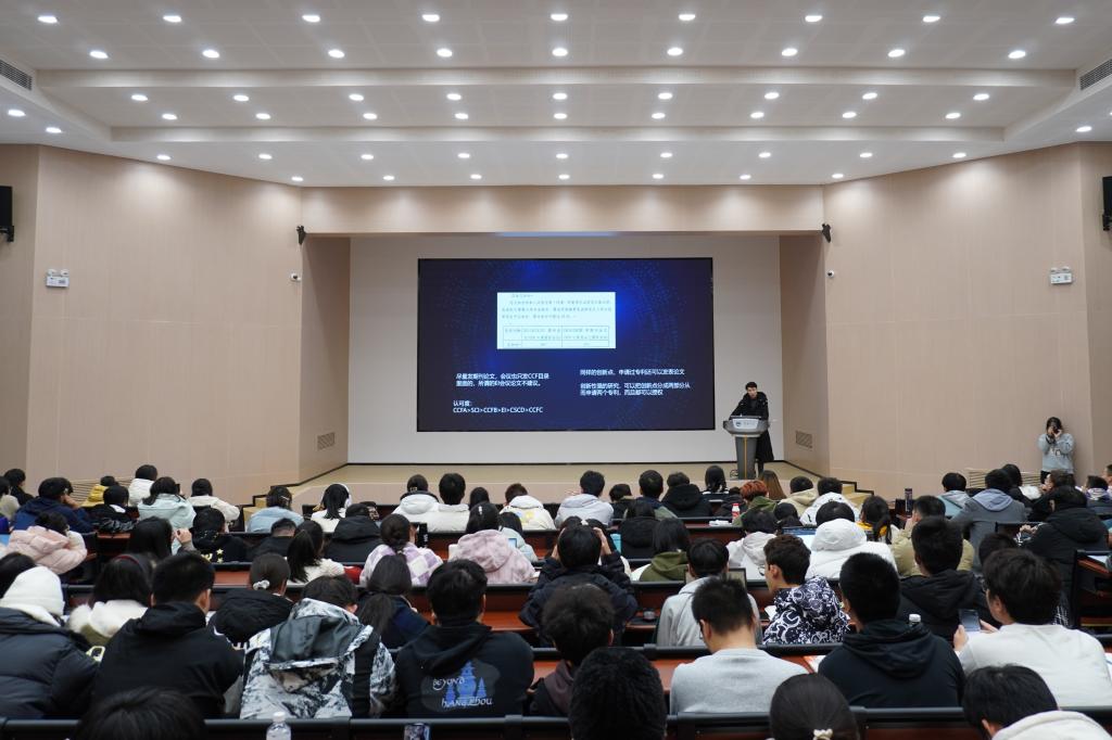 数媒2002班的李子睿同学以自身学习历程为例,阐述了进入顶尖院校所需的三驾马车:英语、数理能力和编程能力。他强调除了关注这些核心能力外,深入了解目标领域、关注前沿科研动向同样至关重要。他鼓励同学们勇敢跨出舒适区,挑战自我,方能在未知的领域中开拓创新,取得卓越的成就的同时保持不骄不躁,以自由、开放、创新的态度要求并规范学习生活。谈及直博经历时,他鼓励大家勇敢尝试,勇敢的尝试始终是成功的最快捷径。在面对挑战时,坚定内心、永不放弃,才能够披荆斩棘,攻克难关,这种精神和态度将是通往成功的道路上的强大助力。