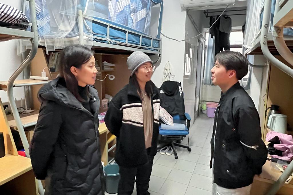 根据学校对寒假学生公寓安全工作的部署及学院领导工作指示,1月19日,学院学工办主任兼分团委书记王园园、学工办副主任杜磊及全体辅导员对留校学生宿舍开展安全大检查。走访过程中,老师们向留校同学宣传解读寒假留校学生管理规定,强调留校期间务必留意宿舍用电安全、人身财产安全等事项,确保学生在校学习和生活期间安定祥和。