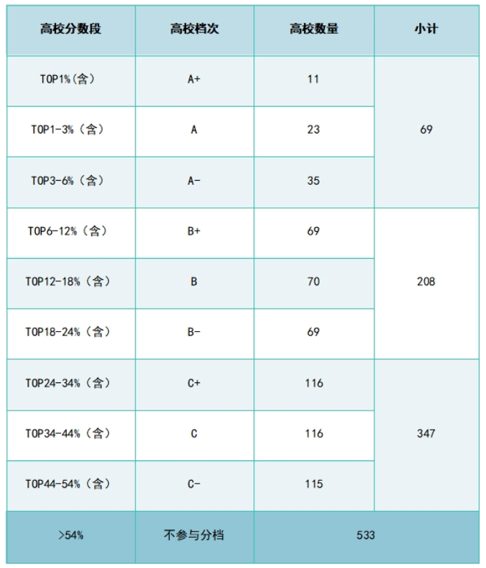 据悉,“普通高校大学生计算机竞赛指数”由普通高校大学生计算机竞赛指数研究专家工作组组织研发,在充分参考普通高校大学生竞赛分析报告赛事质量模型的基础上,构建了计算机竞赛质量分析模型,对于TOP54%(含)的高校设置9个分数段,分别赋予A+、A、A-、B+、B、B-、C+、C、C-共计9档评级。