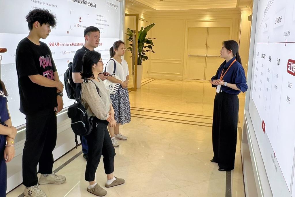 随行的6名智能学子在部门负责人的详细介绍下,进一步了解了企业当前的岗位需求和人才培养路径,并围绕关心的问题进行了沟通。