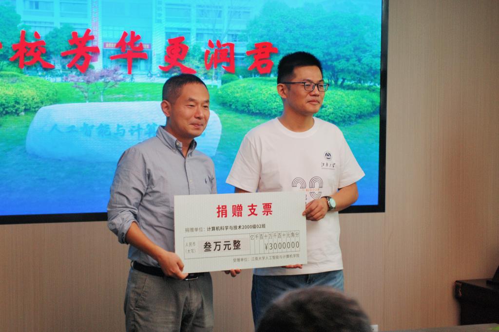 为表达对母校的培养之情,助力学院高质量发展,校友出资捐赠文化墙建设。方伟代表学院接受捐赠,并向校友颁发捐赠证书。在学院校友的原创MV《蠡湖大道1800》中,与会老师为校友们佩戴天下江南人徽章。